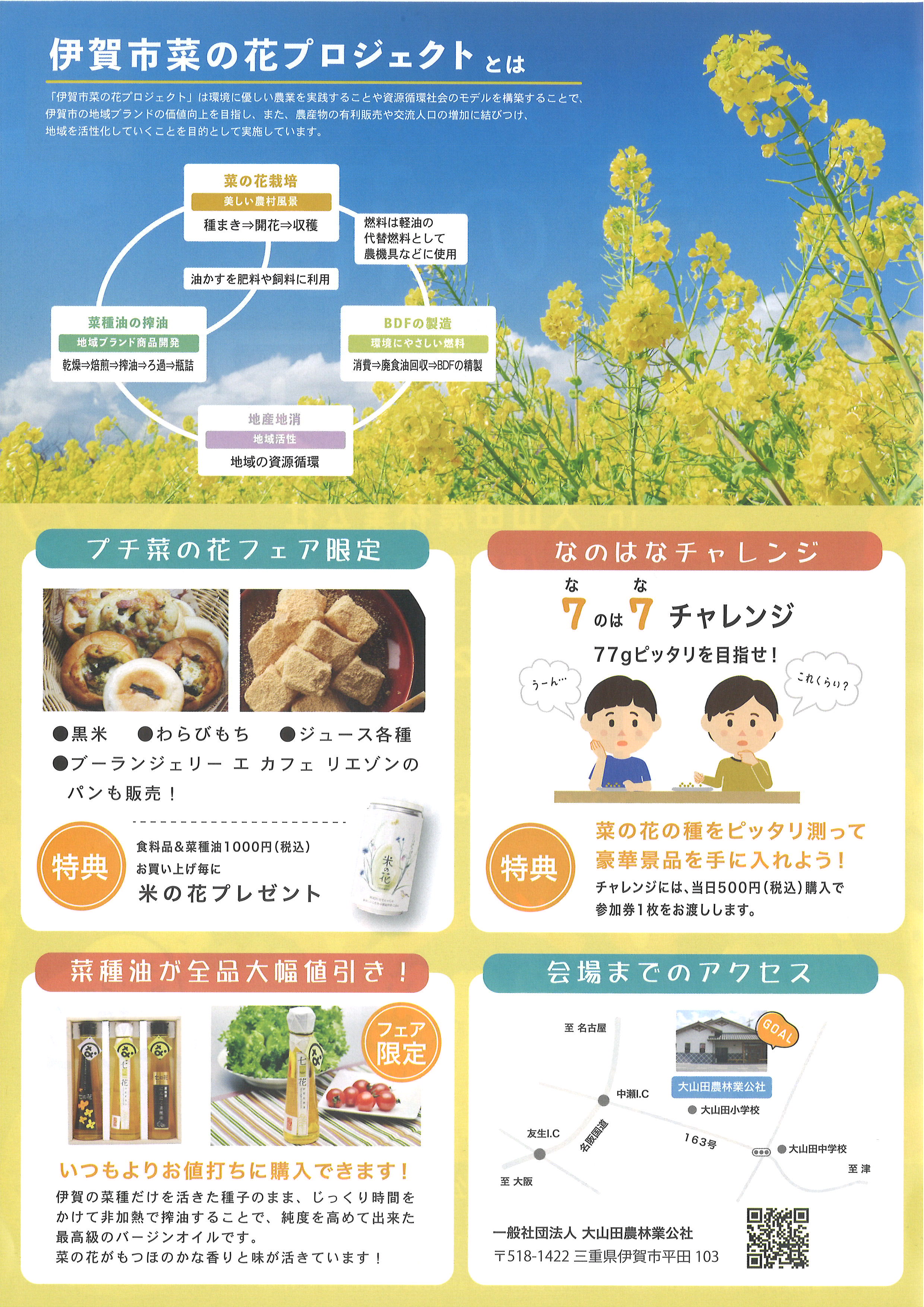 2024年1月4日 (木) より、伊賀産菜種油の価格改定を実施させていただきます。